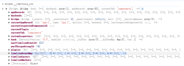 从图片中可以看出,Vue devtools 在 window 全局对象下挂载了一个对象,并且这个对象中的某个属性保存了前面通过 deepcopyArray 和 deepcopyObject 深拷贝的对象数据,正是由于这些数据被挂载在 window 全局对象上,导致对于 GC 来说,这些对象都是“可达的”,是“活对象”,因此不会将它们回收,从而导致了内存泄漏。