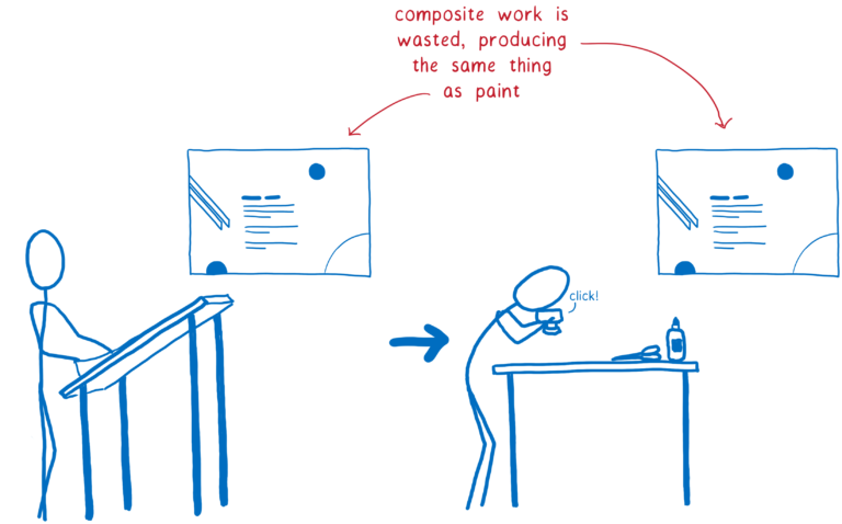 - 绘制和合成之间不再有区别,它们被合并在渲染这一个步骤中。